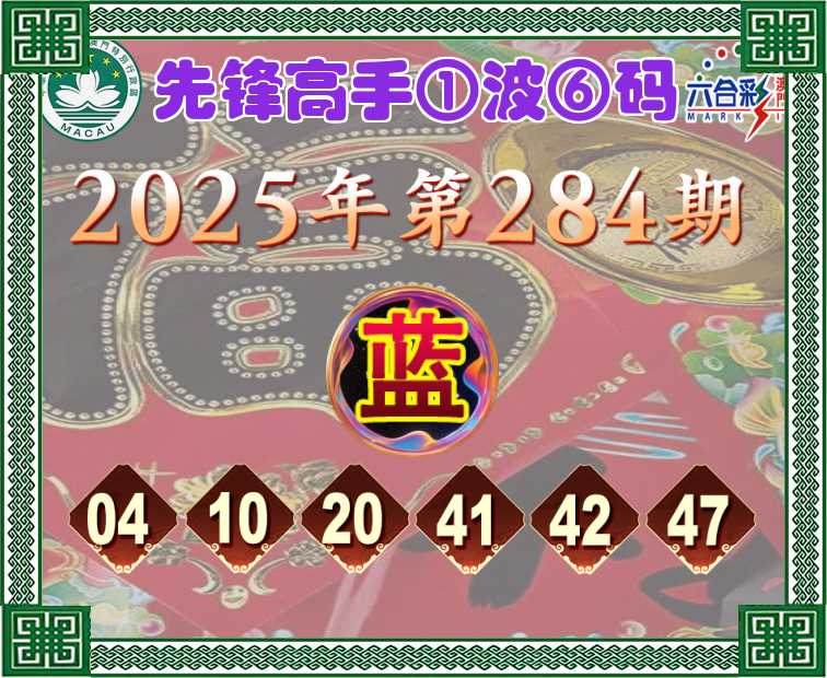 284期:【先锋高手】 ①波⑥码【蓝波】开:牛41准