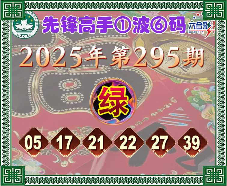 295期:【先锋高手】 ①波⑥码【绿波】开:牛05准