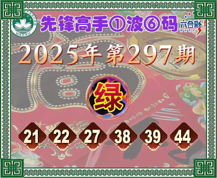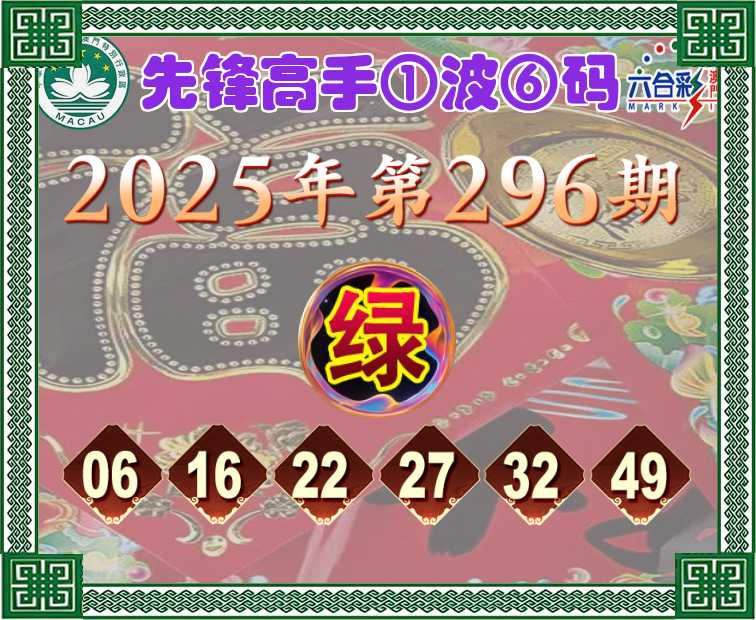 296期:【先锋高手】 ①波⑥码【绿波】开:猴22准