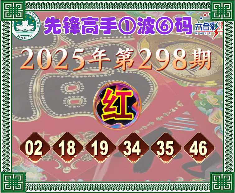 298期:【先锋高手】 ①波⑥码【红波】开:羊23准