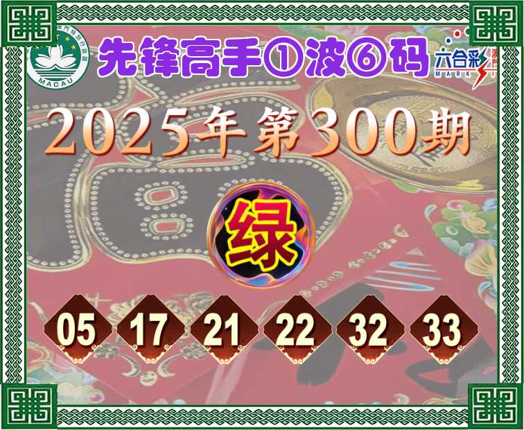 300期:【先锋高手】 ①波⑥码【绿波】开:虎40错