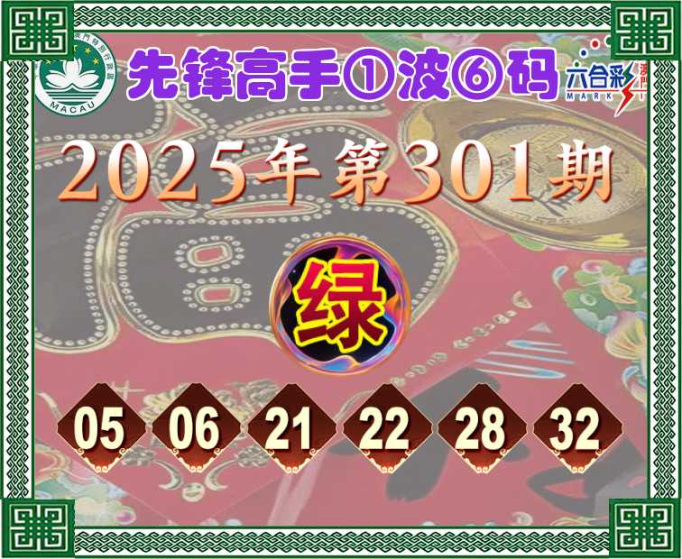 301期:【先锋高手】 ①波⑥码【绿波】开:牛05准