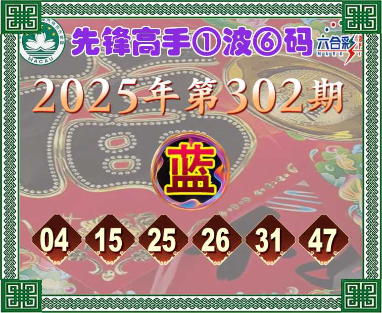 303期:【先锋高手】 ①波⑥码【蓝波】开:兔15准