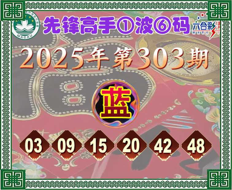 304期:【先锋高手】 ①波⑥码【蓝波】开:马48准