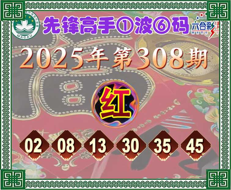 308期:【先锋高手】 ①波⑥码【红波】开:兔39错