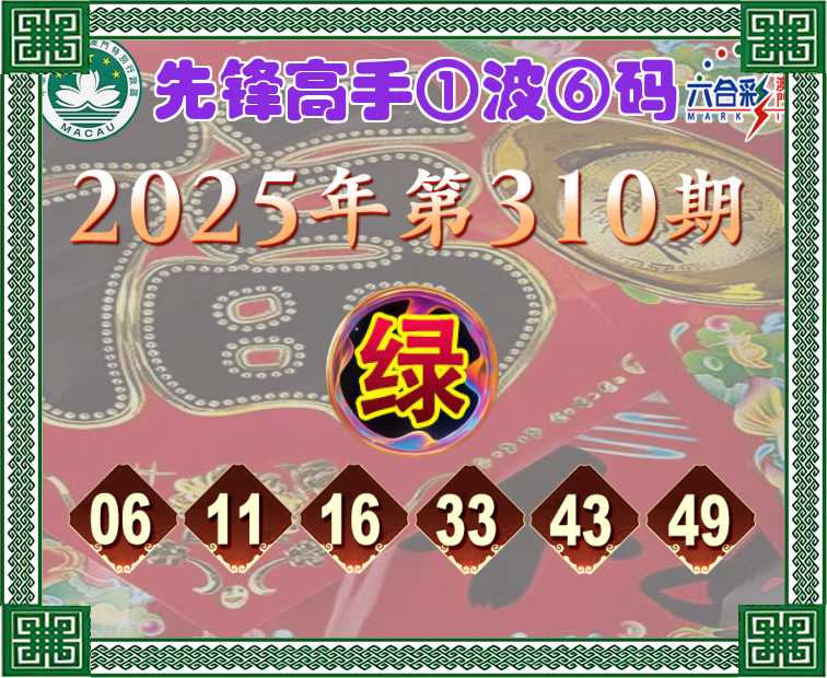 310期:【先锋高手】 ①波⑥码【绿波】开:虎16准